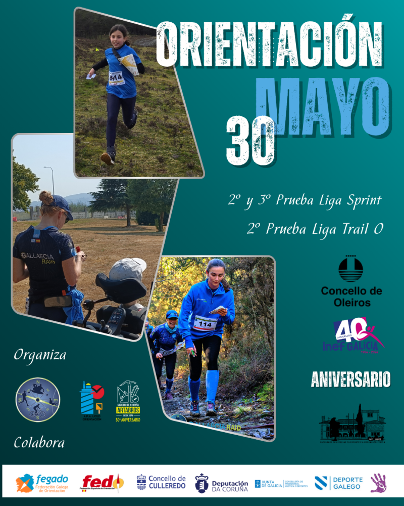 Organizamos junto con nuestros amigos de Artabros y Liceo el mes de la Orientación en Oleiros. Durante dos fines de semana tendremos la varias pruebas de orientación. Sabado 9 de Mayo (Distancia Media y Sprint Urbano) y el Sábado 30 de Mayo (Dos Sprint y un Trail O).