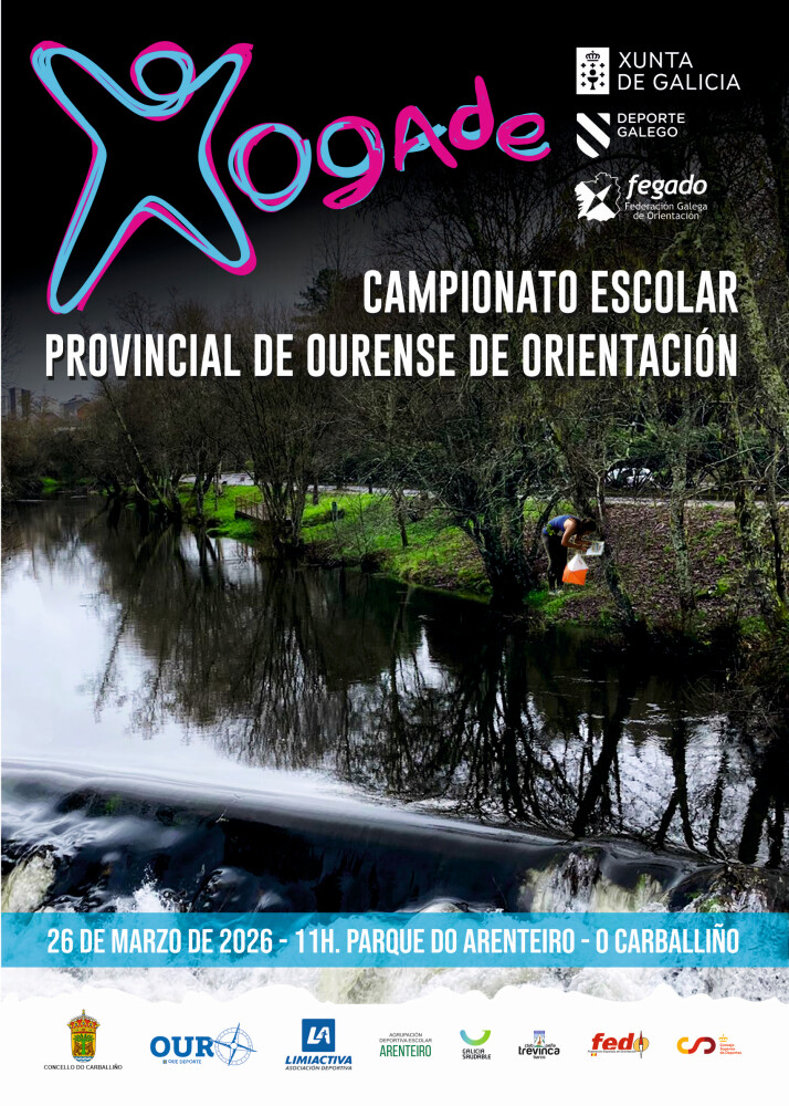 O campionato escolar provincial de orientación vaise realizar o 26 de marzo de 2026 no Parque Municipal do Arenteiro (Carballiño), e está dirixido ao público escolar entre os anos 2010 e 2013.